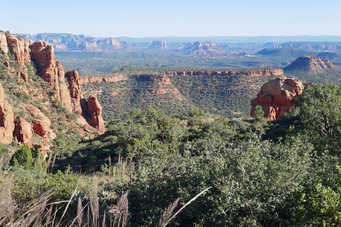 Egal wohin man von Sedona auch schaut, überall ragen Zinnen, Klippen und Mesa-Klötze empor, die zum Sunrise oder Sunset rotorange aufleuchten. Vergleiche mit der monumentalen Schönheit des Grand Canyon sind keinesfalls übertrieben. Anders als bei dessen Vertikalität lässt es sich hier in einem Netz aus Aberdutzenden von Pfaden viel angenehmer wandern. Das einzige Hindernis stellt mitunter die Schwierigkeit dar, eine Parklücke zu finden.