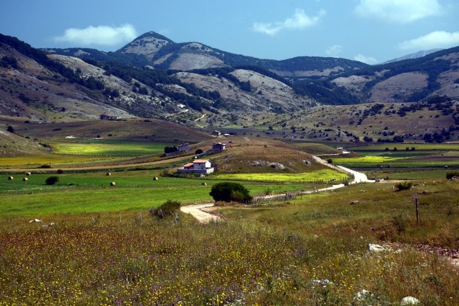 Schon die Zufahrten über holprigen Teer oder gar Schotter sind eher abenteuerlich. Oben erwarten einen das Spiel von Sonne, Schatten und Wind, und im Frühsommer herrliche, quadratkilometergroße Blumenwiesen. Hier gedeihen die Linsen von Rascino. Sie sind mit dem Slowfood-Siegel ausgezeichnet und die allerallerbesten Linsen, die der Autor jemals gegessen hat. Klein, fest, dunkelbraun, einfach köööööstlich!