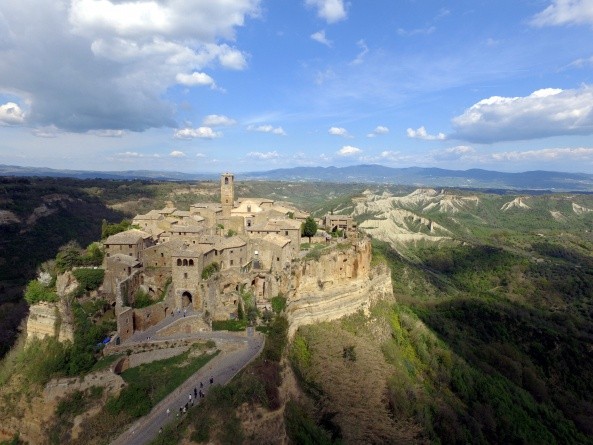 12 km östlich von Bolsena thront ein uraltes Städtchen wie eine gigantische Burganlage auf einem zerbröselnden Tuffsteinfelsen, erreichbar nur über eine kühn geschwungene Fußgängerbrücke.